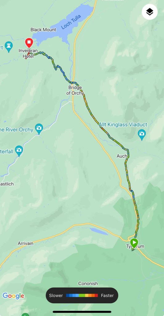 The rest of the hike included a 1 hour climb to then descend to our lonely little hotel at the edge of the vast Rannoch Moor, through which we will be walking for the next couple of days. The Inveroran hotel is absolutely fantastic!