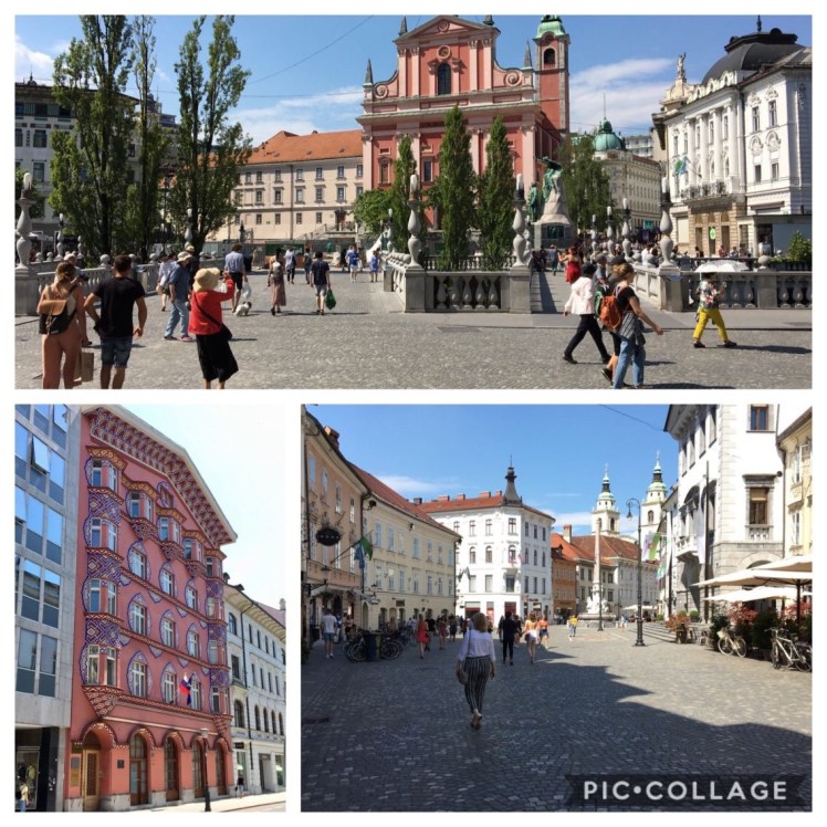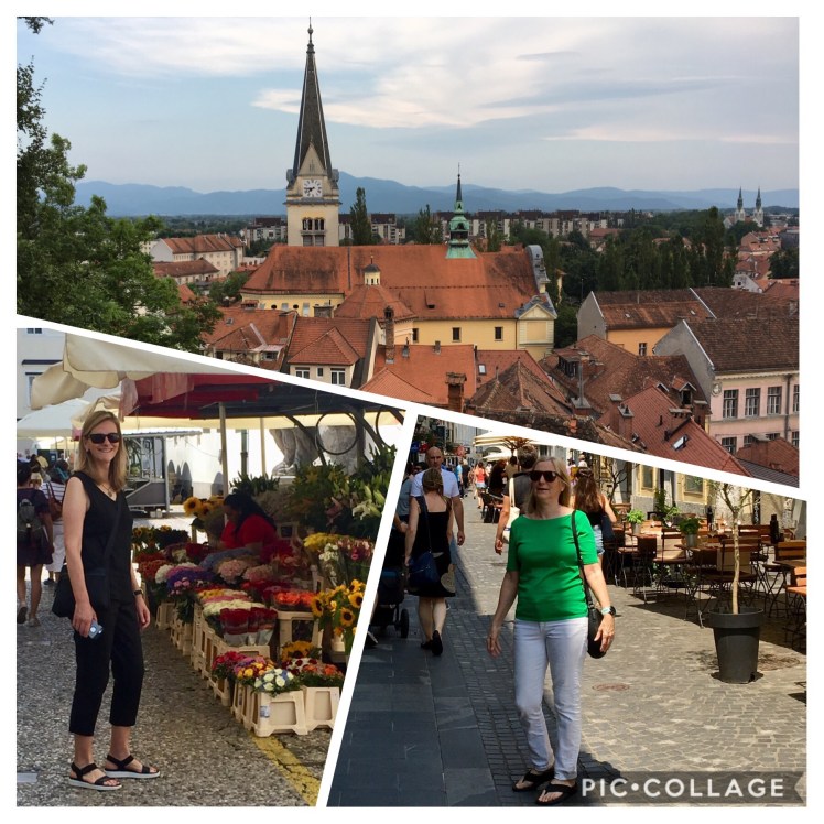 Dober dan! (Good afternoon in Slovenian) We landed in Slovenia’s capital, Ljubljana, on July 4. It’s a charming city, with lots of sidewalk cafes and restaurants, small shops, a central market, the Ljubljanica River, and a medieval castle high on a hilltop. Here are a few pics of our time in Ljubljana.