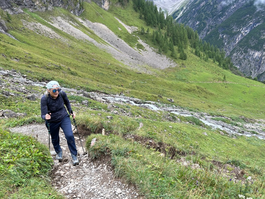 Our distance was a bit longer than we initially intended today. After a somewhat less extreme, then a very steep ascent we eventually reached the Memminger Hütte. The vistas along the way were breathtaking. Pictures cannot capture it. We crossed scree and high alpine passes. We even saw a magnificent herd of Alpine Ibis. The hut was cozy, though we did shower without privacy and sleep in a dormitory beside complete strangers. Food was decent. Smadar has seen enough cream sauces to last her a lifetime. She is eating a lot of cheese and bread. Overall a real experience.