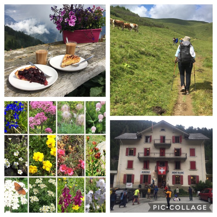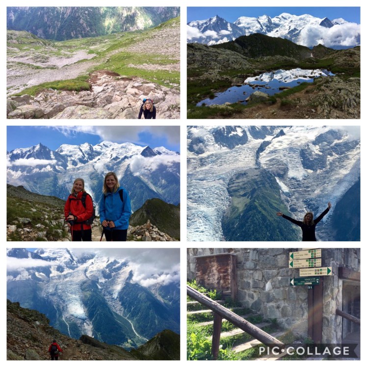This worked out well – it adds hiking time – almost 2.5 hours of time to the suggestion by Kev Reynolds (he suggests Tre le Champ to La Flegere) but we saw the refuge at La Flegere and would not have wanted to stay there. At Plan Praz there is a telepherique which you can take down into Chamonix. Sleep in Chamonix (maybe the same hotel you started at and left your suitcases at?) then do your last day of hiking with minimal backpack. We took the telepherique back up to Plan Praz for the last leg of the hike to Les Houches.