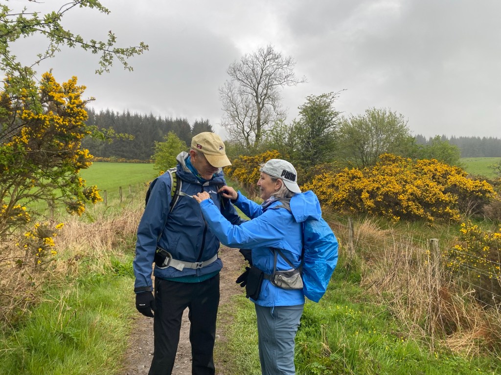 Well, after staying at the lovely Clachan Inn in Drymen we set off in the rain once again. Not the downpour of the day before. We decided if the whole hike were like this we would be fine.