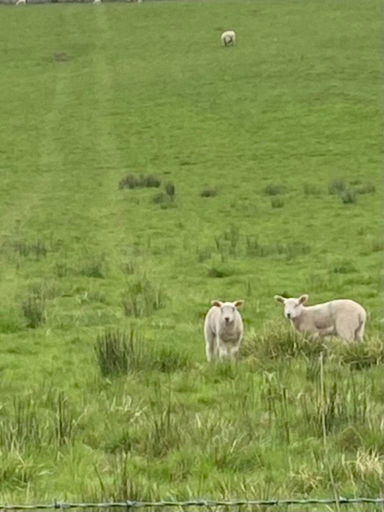 The hike was relatively flat. The countryside enchanting and bursting with buds. The sheep are lambing. We started in light rain and by 1 pm it was raining solidly. The good news is that our clothes, shoes and gear held up well.