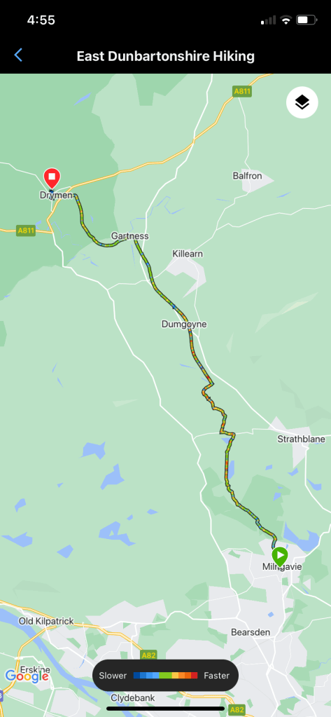 Today marks the first day of hiking the West Highland Way. Early this morning we took a 25 minute commuter train from Glasgow to Milngavie (pronounced Mullguy).