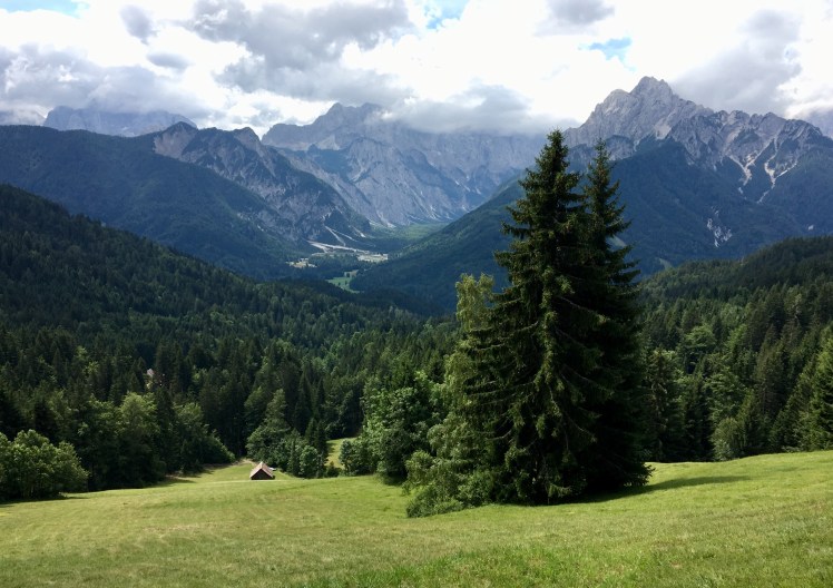We parked the car in the pretty village of Rateče, from where we began the climb up to Rateče-Planina. We opted to mostly follow the gravel bicycle path up the mountain, as it offered a more comfortable, steady climb than the shorter but steeper hiking trail.